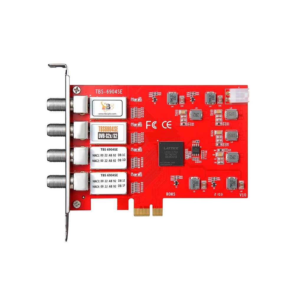 El TBS6904SE es el sucesor del TBS6904. No solo admite la recepción simultánea de canales de TV digital SD/HD desde cuatro transpondedores de satélite diferentes, sino que también es compatible con VCM, lo que lo convierte en un sintonizador de TV profesional para usuarios industriales. Los cuatro sintonizadores DVB-S2X/S2/S avanzados permiten ver canales de TV desde un transpondedor de satélite y grabar simultáneamente otros tres canales desde transpondedores de satélite diferentes. Esta tarjeta de cuatro sintonizadores es uno de los sintonizadores de TV más populares para sistemas de streaming IPTV.